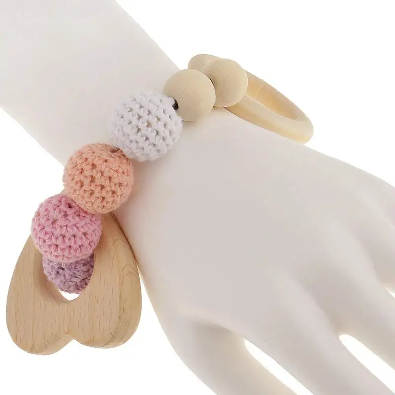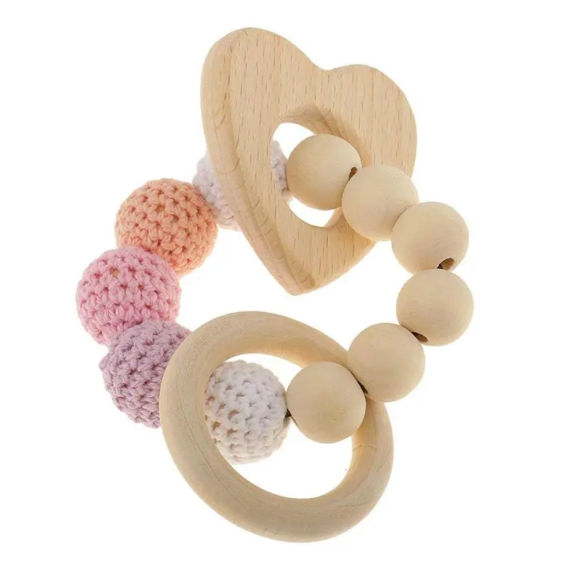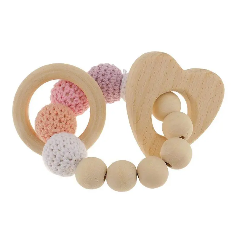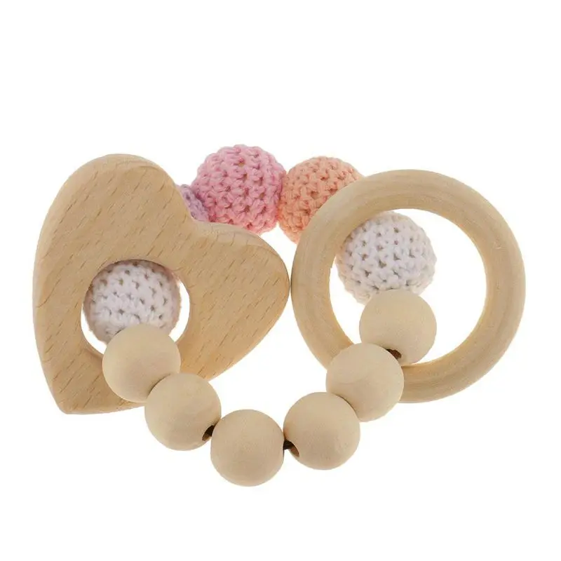 amazing 1 pc pearl teething rings wooden infant rattle toy baby teething accessories - multicolored - heart