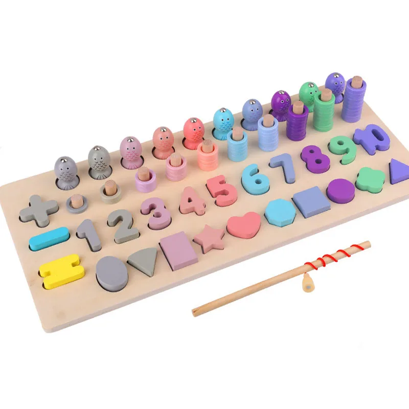Promo Wooden Montessori Toys Count Numbers Matching Geometric Shape Cognition Puzzle Fishing Game Early E