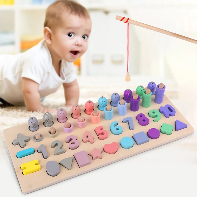 buy Wooden Montessori Toys Count Numbers Matching Geometric Shape Cognition Puzzle Fishing Game Early E