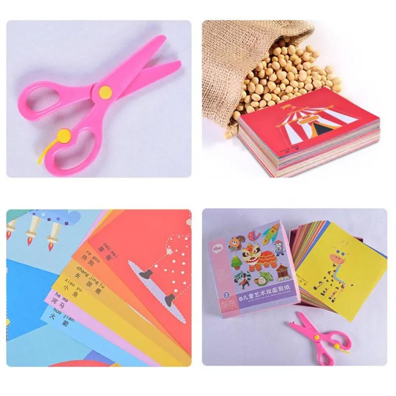 New 100pcs Kids Cartoon Color Paper Folding And Cutting Toys Children Kindergarten Art Craft DIY Educat