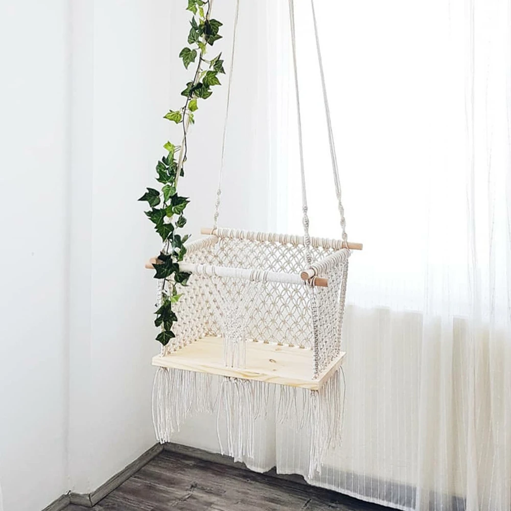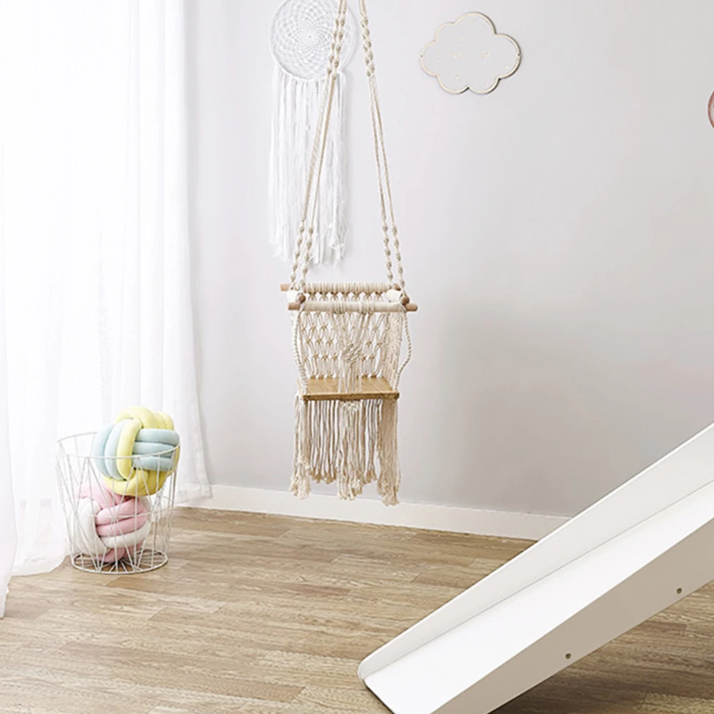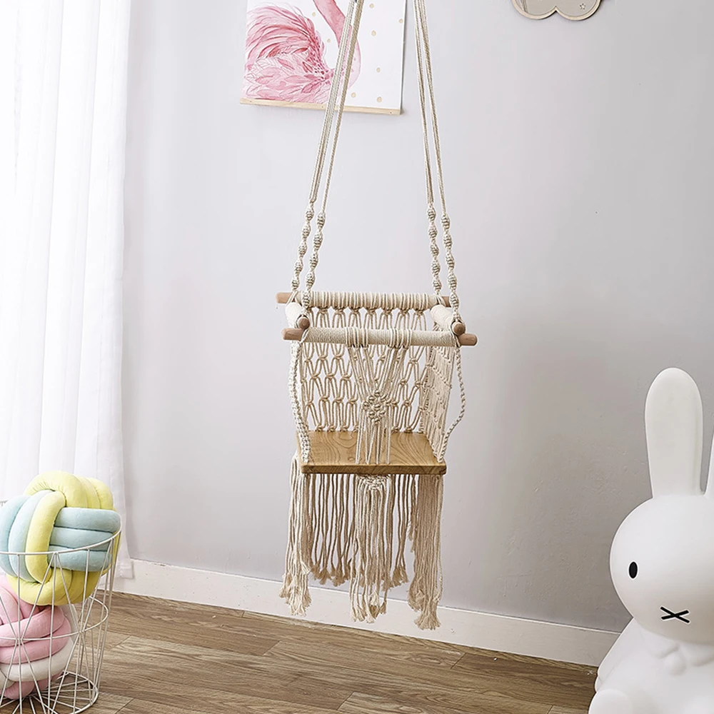 Finest Elegance Tassels Kids Swing Solid Wood Woven Rope Children Indoor Toy Room Decor Best Gift For Prin