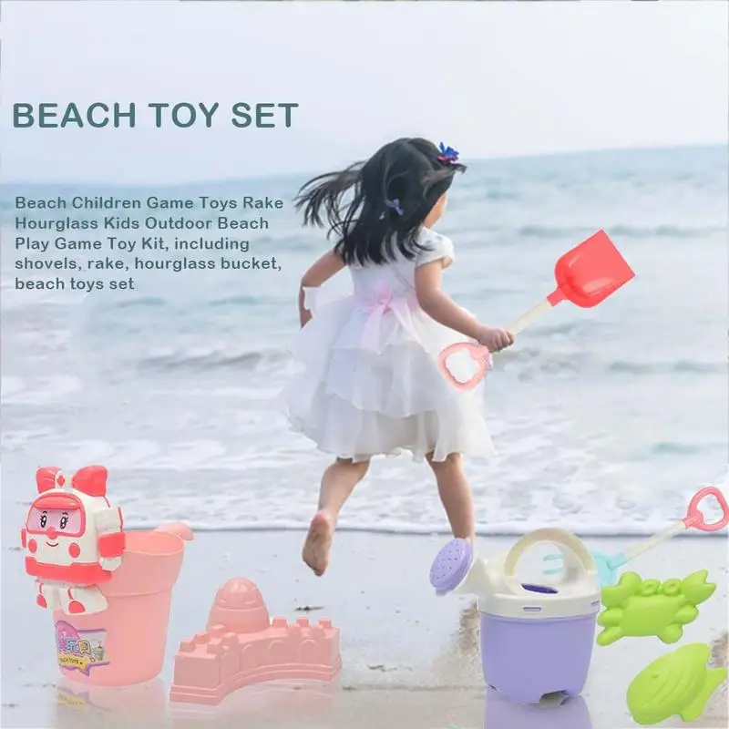 price cut 7PCS Funny Kids Beach Sand Game Toys Set Shovels Rake Hourglass Bucket Children Outdoor Beach Plays